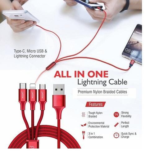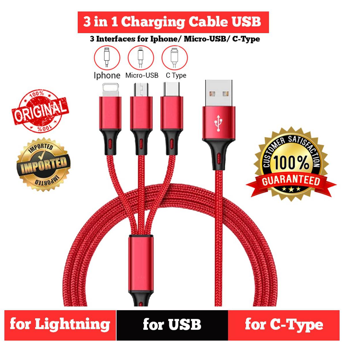 Fast Charging Cable 3 In 1 Data Cable IOS Micro USB Type-c for iPhone 13 12 11 Huawei Xiaomi Samsung Pack of 1